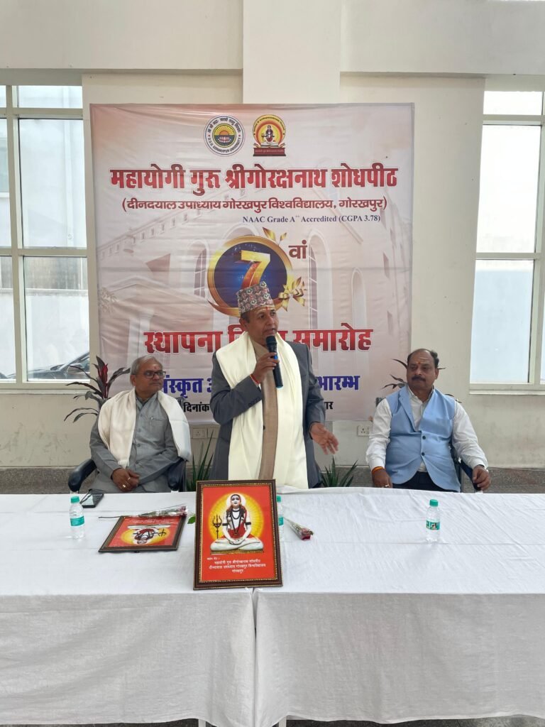 गोरखपुर 30 नवंबर 2025। दीनदयाल उपाध्याय गोरखपुर विश्वविद्यालय स्थित महायोगी गुरु श्रीगोरक्षनाथ शोधपीठ की 7वीं स्थापना दिवस का आयोजन किया गया। आयोजन का शुभारम्भ मुख्य अतिथि प्रो. सुघन कुमार पौडेल, निदेशक, नेपाल संस्कृत विश्वविद्यालय, दांग, नेपाल,  प्रो. गणेश शंकर विद्यार्थी, लखनऊ विश्वविद्यालय, लखनऊ एवं डॉ. कुशल नाथ मिश्र, उप निदेशक, महायोगी गुरु श्रीगोरक्षनाथ शोधपीठ के द्वारा किया गया। इस समारोह के मुख्य अतिथि नेपाल संस्कृत विश्वविद्यालय, दांग, नेपाल के प्रो. सुघन कुमार पौडेल रहे।